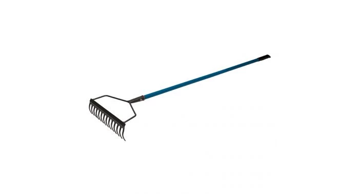 Tête de râteau à finition martelée, revêtement époxy, manche en acier tubulaire à poignée confortable et trou de suspension. Pour aérer la terre, briser les mottes, étaler, niveler et damer le sol. Permet également de ratisser les feuilles, foin, herbe et autres débris de jardin. 14 dents. L x l : 90 x 350 mm.