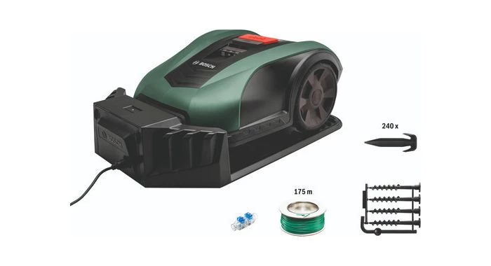 Indego M 700 : Station De Base, Câble D’Alimentation, 4 Clous De Fixation, Clé De Sécurité, 175 M De Câble De Limitation, 240 Broches De Fixation, 2 Étriers À Câble, Mode D’Emploi.