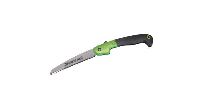 Scie à élaguer repliable à lame super-acérée avec dents à triple tranchant spécialement conçues pour une coupe rapide et facile. Poignée confortable caoutchoutée et mécanisme de verrouillage de la lame.Idéal pour le jardinage, l’élagage, la coupe de bois et de haies. Trou de suspension pour un rangement facile.