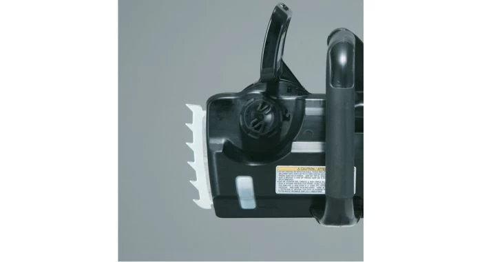Frein de chaîne safety-matic déclenché par inertie en cas de rejet, bloquant la chaîne et coupant le courant du moteur.